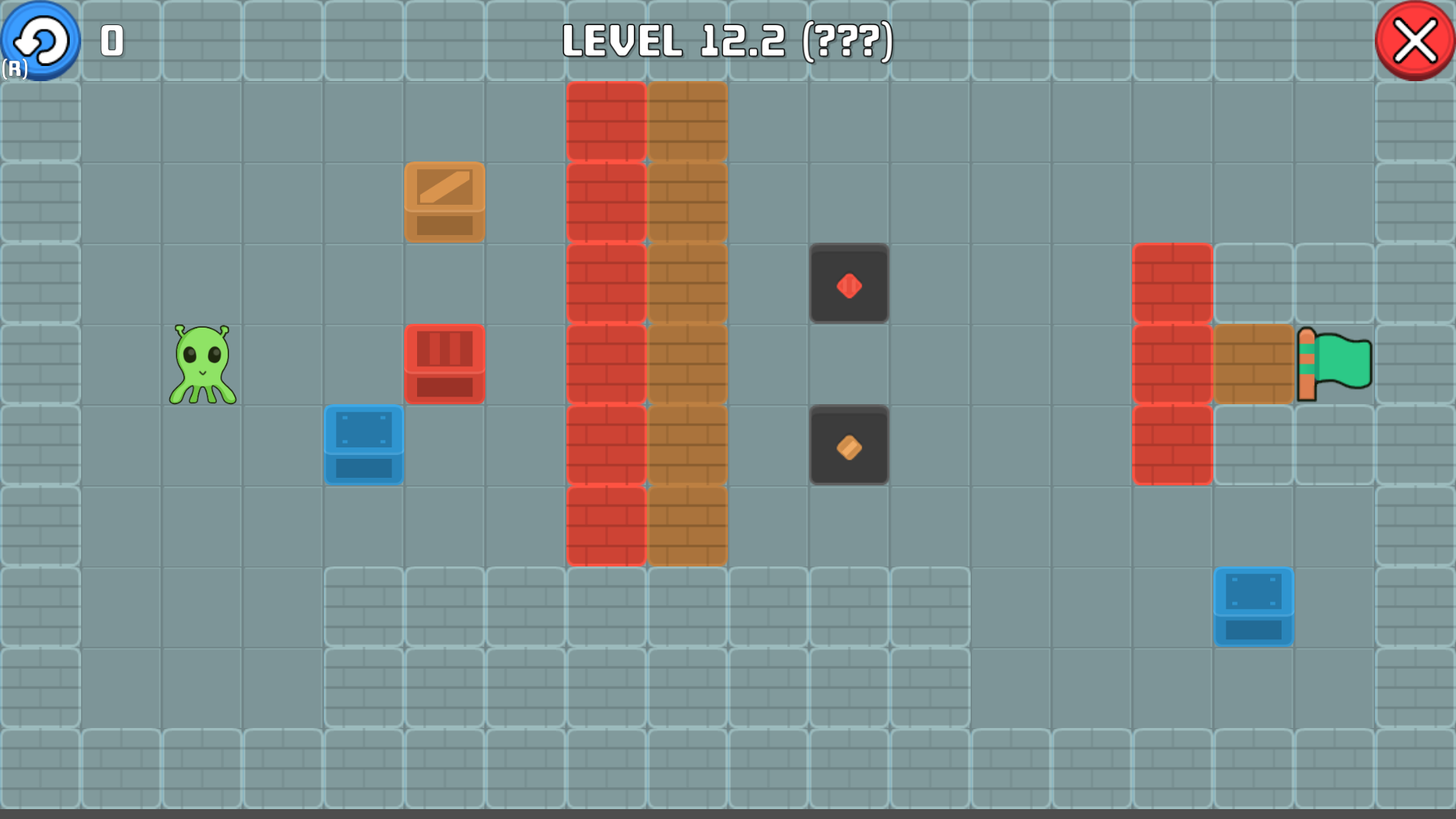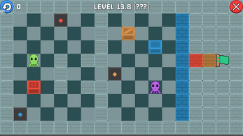 - Push the colored boxes to their corresponding tiles. Reach the flag to pass the level.