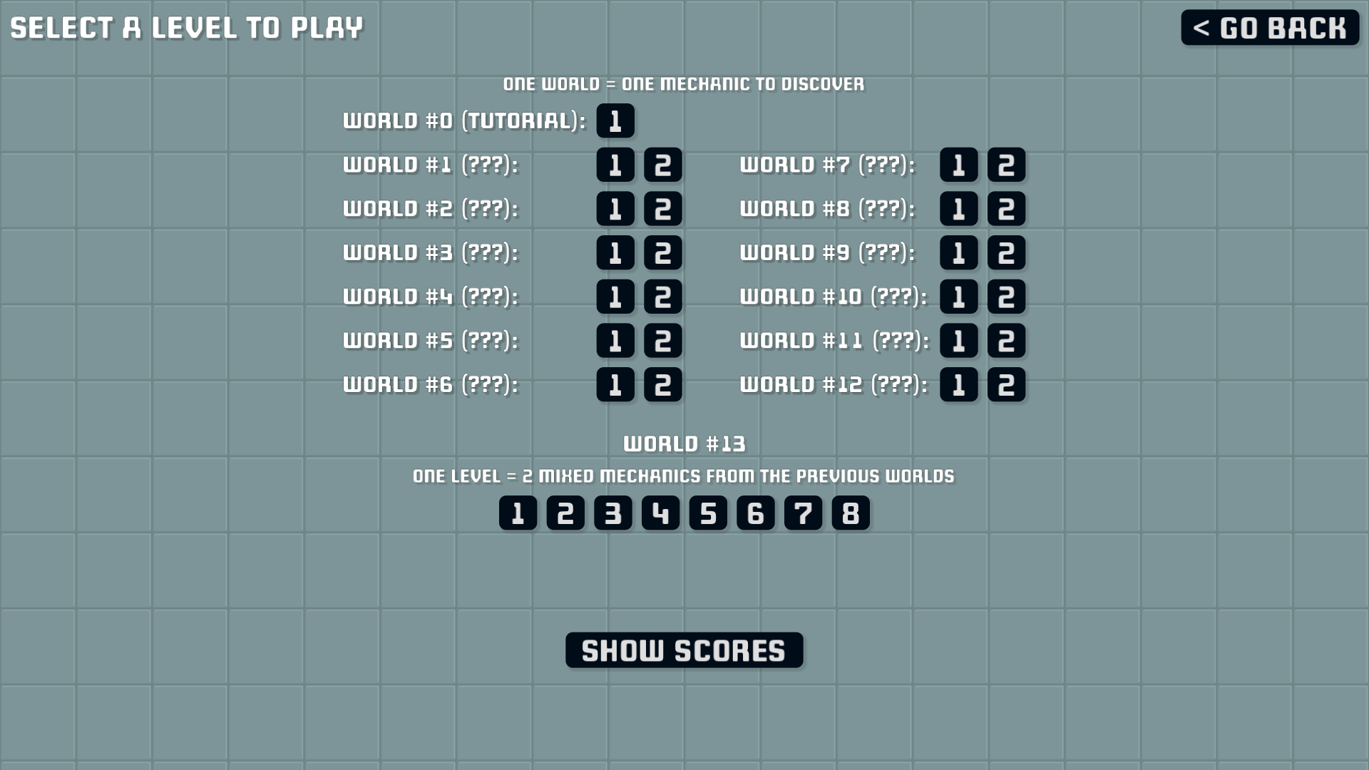 - Prove your mastery in the 8 final levels, which mix and match the previous mechanics.