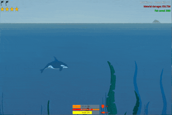 Hit boats to damage and destroy them, but you will be damaged as well. Eat humans to heal. Occasionally, the opportunity to save fellow orcas from humans will appear: saving them provides you with extra lives, allowing you to continue the run even after dying.